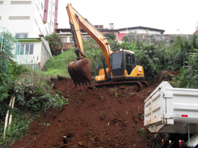 Escavação e limpeza de terreno.